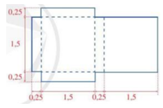 Từ miếng bìa, ta tạo lập được hình hộp chữ nhật có chiều dài là 1,5 dm, chiều rộng 0,25 dm, chiều cao 1,5 dm.