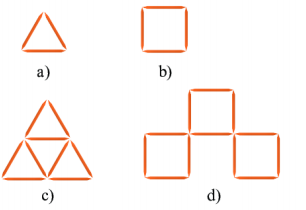 Huy chơi trò xếp 36 que tăm thành những hình giống nhau như dưới đây. Trong mỗi trường hợp a, b, c, d, …