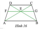 Cho hình thang cân \(ABCD\)\(AB\) // \(CD\). Qua gia điểm \(E\) của \(AC\)\(BD\), ta vẽ đường thẳng song song với \(AB\) và cắt \(AD\), \(BC\) lần lượt tại \(F\)\(G\) (Hình 16). Chứng minh rằng \(EG\) là tia phân giác của góc \(CEB\).