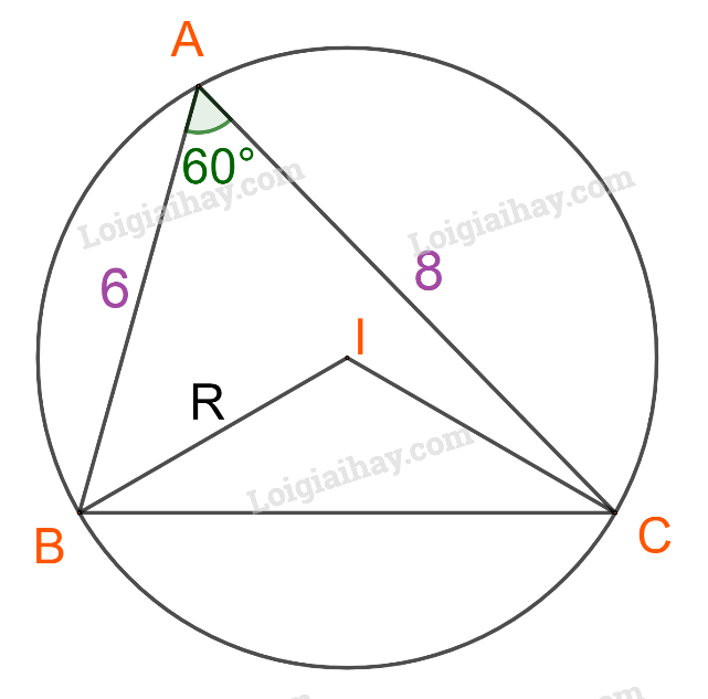 Cho tam giác ABC có AB = 6,AC = 8 và A =60 a) Tính diện tích tam giác ABC. b) Gọi I là tâm đường tròn ngoại tiếp tam giác ABC. Tính diện tích tam giác IBC.