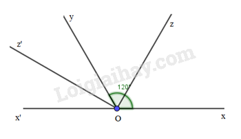 Vẽ hai góc kề bù \(\widehat {xOy},\widehat {yOx’}\), biết \(\widehat {xOy} = 120^\circ \). Gọi Oz là tia phân giác của \(\widehat {xOy}\), Oz’ là tia phân giác của \(\widehat {yOx’}\). Tính \(\widehat {zOy},\widehat {yOz’},\widehat {zOz’}\)