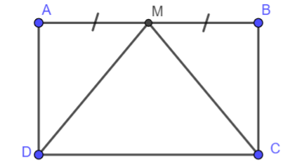 Bài 6. Cho hình chữ nhật ABCD và cho M là trung điểm của đoạn thẳng AB như hình vẽ dưới đây. Chứng minh rằng M nằm trên đường trung trực của CD.