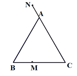 Cho tam giác ABC đều cạnh a. Các điểm M, N lần lượt thuộc các tia BCCA thoả mãn \(BM = \frac{1}{3}BC,CN = \frac{5}{4}CA\). Tính: