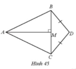 Quan sát Hình 45, biết AM là đường trung trực của đoạn thẳng BC và DB = DC. Chứng minh ba điểm A, M, D thẳng hàng.