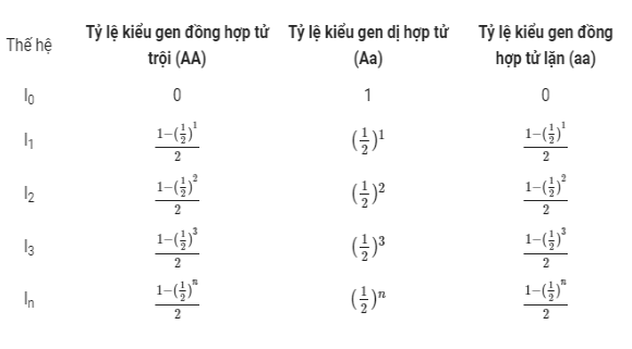 Sự thay đổi thành phần kiểu gen của quần thể tự phối qua các thế hệ: