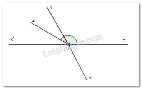 Ta có: \(\widehat {y’Oz} + \widehat {yOz} = 180^\circ \) (hai góc kề bù). Suy ra: \(\widehat {y’Oz} = 180^\circ  – \widehat {yOz} = 180^\circ  – 30^\circ  = 150^\circ \).