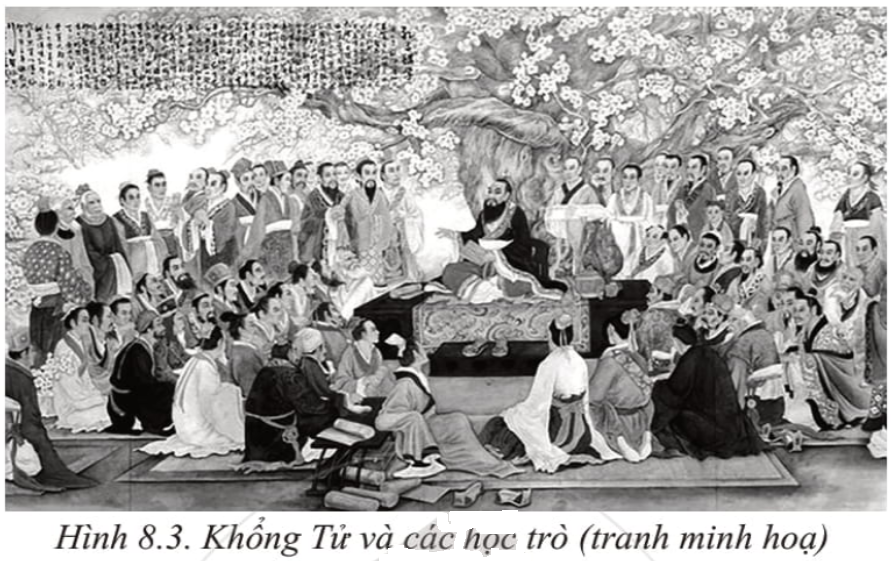 Hình 8.3 nói đến thành tựu văn hóa của Trung Quốc thời Xuân Thu- Chiến Quốc. Đây là thời kỳ hoàng kim của triết học Trung Quốc vì rất nhiều hệ thống triết lý và tư tưởng được phát triển và bàn luận một cách tự do.Tiêu biểu với 4 phái: Nho gia, Pháp gia, Đạo gia, Mặc gia. Hiện tượng này được gọi là trăm nhà tranh tiếng – tức “bách gia tranh minh”.