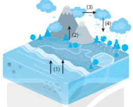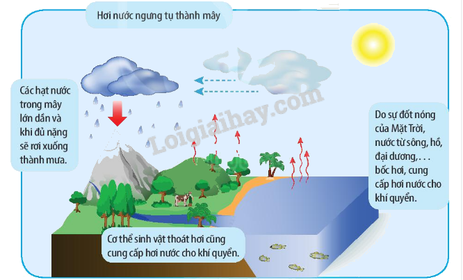 (1) Do sự đốt nóng của Mặt Trời, nước từ sông, hồ, đại dương,… bốc hơi, cung cấp nước cho khí quyển.