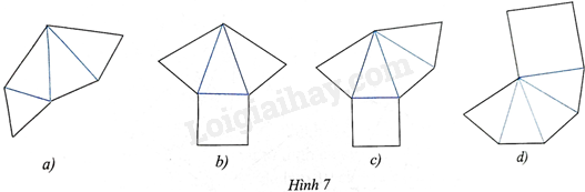 Hình 7a gấp được một hình chóp tam giác đều, hình 7c gấp được một hình chóp tứ giác đều.