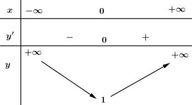 Hàm số đạt cực tiểu tại \(x=0\); \(y_{CT}=1\)