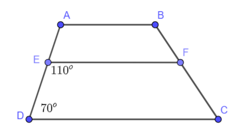 \(\widehat { \Leftrightarrow AEF} = {180^o} – {110^o} = {70^o}\)