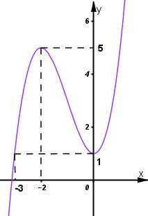 Ta thấy đồ thị hàm số có điểm cực đại là \(\displaystyle A(-2, 5)\), điểm cực tiểu là \(\displaystyle B(0, 1)\).