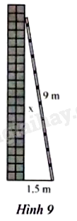 Tính khoảng cách x từ đầu thang đến chân tường (Hình 9).