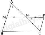 Tứ giác BMPC có: CP//BM, \(CP = BM\) nên tứ giác BMPC là hình bình hành. Do đó, MN//BC, \(MN = \frac{{BC}}{2}\)