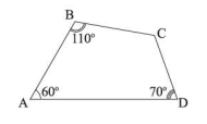 \(\widehat C = 360^\circ  – \left( {60^\circ  + 110^\circ  + 70^\circ } \right) = 120^\circ \)