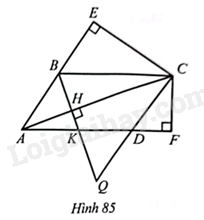 a)      Ta có hai tam giác \(ABH\) và \(ACE\) đều là các tam giác vuông và \(\widehat{BAH}=\widehat{EAC}\). Suy ra \(\Delta ABH\backsim \Delta ACE\). Hai tam giác \(CBH\) và \(ACF\) đều là các tam giác vuông và \(\widehat{BCH}=\widehat{CAF}\) , suy ra \(\Delta CBH\backsim \Delta ACF\).