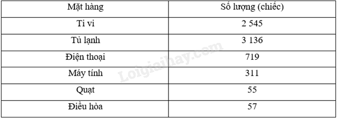 Một cửa hàng điện máy thống kê lại số lượng các mặt hàng bán trong năm qua như bảng sau: