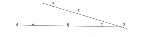 Ta cần tìm điểm G nằm trên d và D, E, G thẳng hàng. Khi đó G là điểm chung của DE và d. Hay G là giao điểm của DE và d.