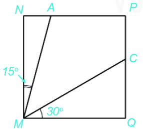 Cho hình vuông MNPQ và số đo các góc ghi tương ứng như trên hình sau: