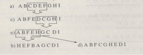Cho rằng sắp xếp ở a là sắp xếp ban đầu, các đảo đoạn khác nhau có thể xuất hiện theo trình tự nào?
