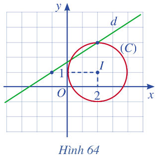 b) Phương trình đường tròn (C) có tâm \(I\left( {2;1} \right)\) và \(R = 2\) là: \({\left( {x – 2} \right)^2} + {\left( {y – 1} \right)^2} = 4\)