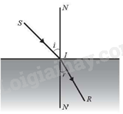 Theo định luật khúc xạ ánh sáng, khi một tia sáng được chiếu tới mặt phân cách giữa hai môi trường trong suốt không đồng chất thì tỉ số \(\frac{{\sin i}}{{\sin r}}\), với i là góc tới và r là góc khúc xạ, là một hằng số phụ thuộc vào chiết suất của hai môi trường.
