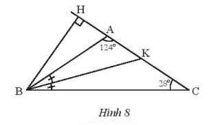 Ta có: \(\widehat {HKB} = \widehat {AKB} = {180^o} – {124^o} – {14^o} = {42^o}\)