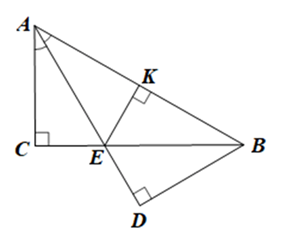 Cho tam giác ABC vuông tại C có ˆCAB=60°CAB^=60° , AE là tia phân giác của góc CAB (E ∈ BC). Gọi D là hình chiếu của B trên tia AE, K là hình chiếu của E trên AB. Chứng minh:
