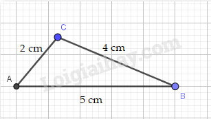 + Dùng compa, vẽ cung tròn tâm A bán kính 2 cm, cung tròn tâm B bán kính 4cm. Hai cung tròn này cắt nhau tại C.