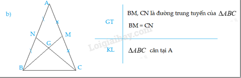 a) Trong một tam giác cân, hai đường trung tuyến ứng với 2 cạnh bên là hai đoạn thẳng bằng nhau.