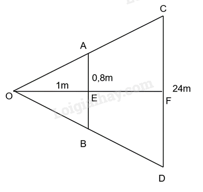 Có OE = 1m; AB = 0,8m; CD = 6.4 = 24m