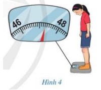 Hình 4 mô tả một chiếc cân khối lượng, ở đó các vạch ghi 46 và 48 lần lượt ứng với các số đo 46 kg và 48 kg. Khi nhìn vị trí mà chiếc kim chỉ vào, bạn Minh đọc số đo là 47,15 kg, bạn Dương đọc số đo là 47,3 kg, bạn Quân đọc số đo là 47,65 kg. Bạn nào đã đọc đúng số đo? Vì sao?