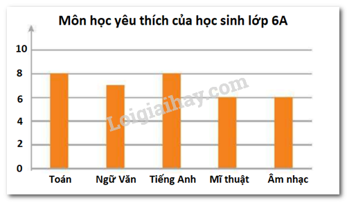 Kết quả điều tra về môn học được yêu thích nhất của các bạn lớp 6A được thể hiện trong bảng sau đây: