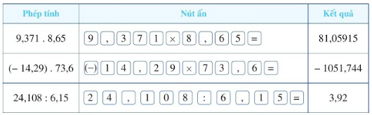\(\begin{array}{*{20}{l}}{3,14.7,652 = 24,02728}\\{\left( { – 10.3125} \right):2,5 =  – 4,125}\\{54,369:\left( { – 4,315} \right) =  – 12,6\;}\end{array}\)