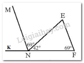 Ta được: \(\widehat {MNK} = \widehat {EFN} = {69^o}\)
