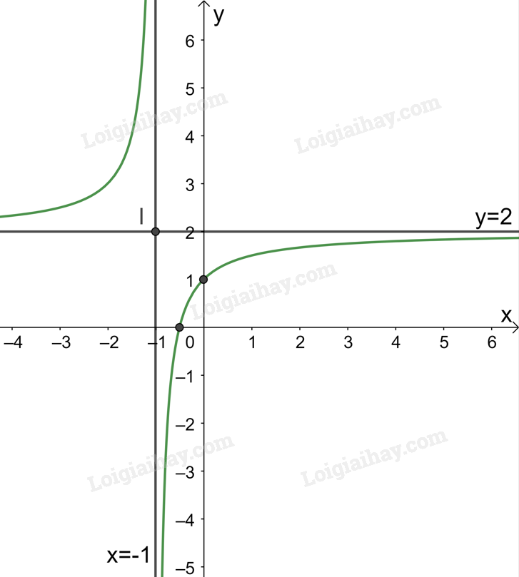 Do đó, đồ thị hàm số nhận đường thẳng \(x =  – 1\) làm tiệm cận đứng và đường thẳng \(y = 2\) làm tiệm cận ngang.