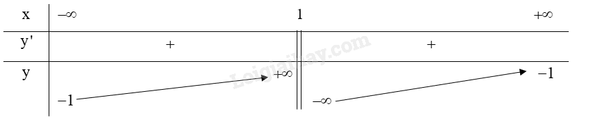 Hàm số đồng biến trên khoảng \(\left( { – \infty ;1} \right)\) và \(\left( {1; + \infty } \right)\).