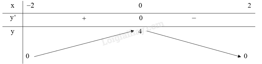 Ta có: \(y’ = \frac{{\left( {4 – {x^2}} \right)’}}{{2\sqrt {4 – {x^2}} }} = \frac{{ – x}}{{\sqrt {4 – {x^2}} }},y’ = 0 \Leftrightarrow x = 0\left( {tm} \right)\)