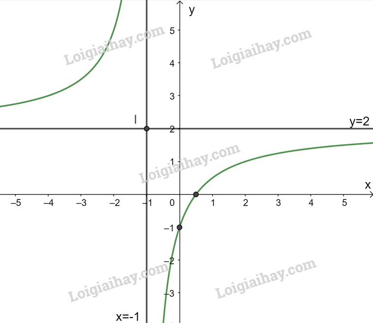 Do đó, đồ thị hàm số nhận đường thẳng \(x = – 1\) làm tiệm cận đứng và đường thẳng \(y = 2\) làm tiệm cận ngang.