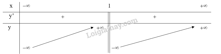 Do đó, hàm số đồng biến trong khoảng \(\left( { – \infty ;1} \right)\) và \(\left( {1; + \infty } \right)\).