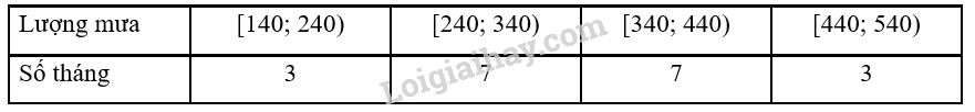 Gọi \({x_1};{\rm{ }}{x_2}; \ldots ;{\rm{ }}{x_{20}}\) là mẫu số liệu gốc về lượng mưa đo được vào tháng 7 từ năm 2002 đến 2021 tại một trạm quan trắc đặt ở Cà Mau được xếp theo thứ tự không giảm.
