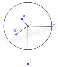 Cho đường tròn (O), bán kính 5 cm và bốn điểm A, B, C, D thỏa mãn OA = 3 cm, OB = 4 cm, OC = 7 cm, OD = 5 cm. Hãy cho biết mỗi điểm A, B, C, D nằm trong, nằm trên hay nằm ngoài đường tròn (O).