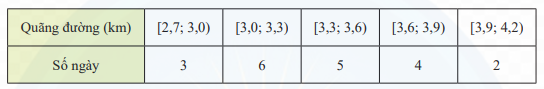 Mỗi ngày bác Hương đều đi bộ để rèn luyện sức khoẻ. Quãng đường đi bộ mỗi ngày (đơn vị: km) của bác Hương trong 20 ngày được thống kê lại ở bảng sau: