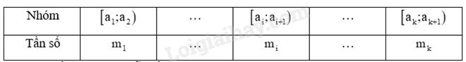 Khoảng biến thiên của mẫu số liệu ghép nhóm trên là: \(R = {a_{k + 1}} – {a_1}\).