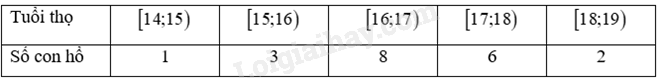 Một vườn thú ghi lại tuổi thọ (đơn vị: năm) của 20 con hổ và thu được kết quả như sau: