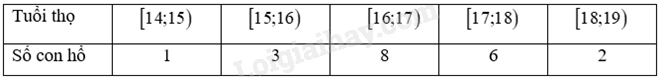 Một vườn thú ghi lại tuổi thọ (đơn vị: năm) của 20 con hổ và thu được kết quả như sau: