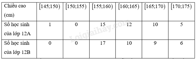 a) Tìm khoảng biến thiên, khoảng tứ phân vị cho các mẫu số liệu ghép nhóm về chiều cao của học sinh lớp 12A, 12B.