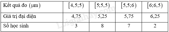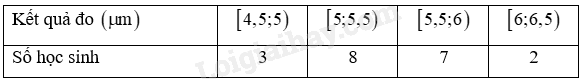 Một nhóm 20 học sinh dùng một thiết bị đo đường kính của một nhân tế bào cho kết quả như sau: