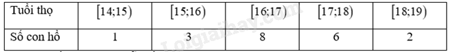 Một vườn thú ghi lại tuổi thọ (đơn vị: năm) của 20 con hổ và thu được kết quả như sau: