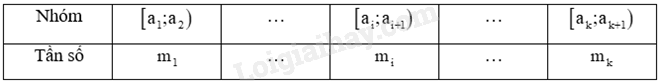 Khoảng biến thiên của mẫu số liệu ghép nhóm trên là: \(R = {a_{k + 1}} – {a_1}\).